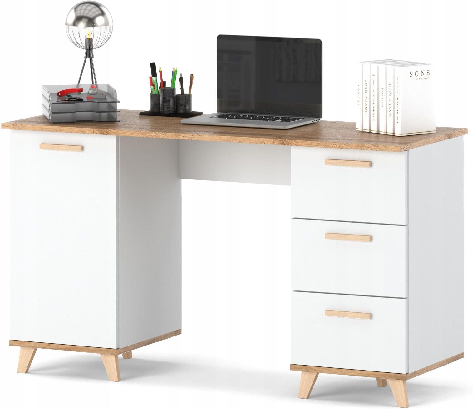Biurko Białe 3 Szuflady 138Cm Meble Oslo Styl Skandynawski Uniwersalne Lidzbark Warmiński