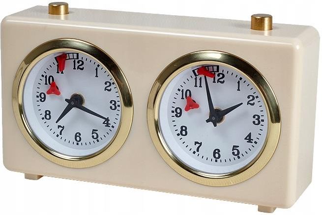 Zegar plastikowy CLASSIC mały, kremowy DGT Zegar szachowy mechaniczny w obudowie plastikowej w kolorze kremowym. Zegar posiada wysokiej jakości nakręcany mechanizm firmy BHB, który wmontowany został w plastikową obudowę o wymiarach całkowitych 80x150x40mm. Duże, jasne tarcze są łatwe do odczytania i charakteryzują się również widocznym mechanizmem opadających flag. Wszystkie mechaniczne części są wykonane z mosiądzu lub stali nierdzewnej i są frezowane. Zegar jest odpowiedni zarówno dla szkół jak i turniejów. Zatem najbardziej nadaje się jako uzupełnienie profesjonalnego zestawu szachowego składającego się z figur typu Staunton Figury z kuferkiem nr 5 oraz deski szachowej Deska nr 5 Mahoń Jest on dostępny w 5 różnych kolorach. WAGA: 0.3 kg WYMIARY PRODUKTU: 80x150x40 mm Kod producenta: CHCLK15 cream ROZMIAR: MAŁE
