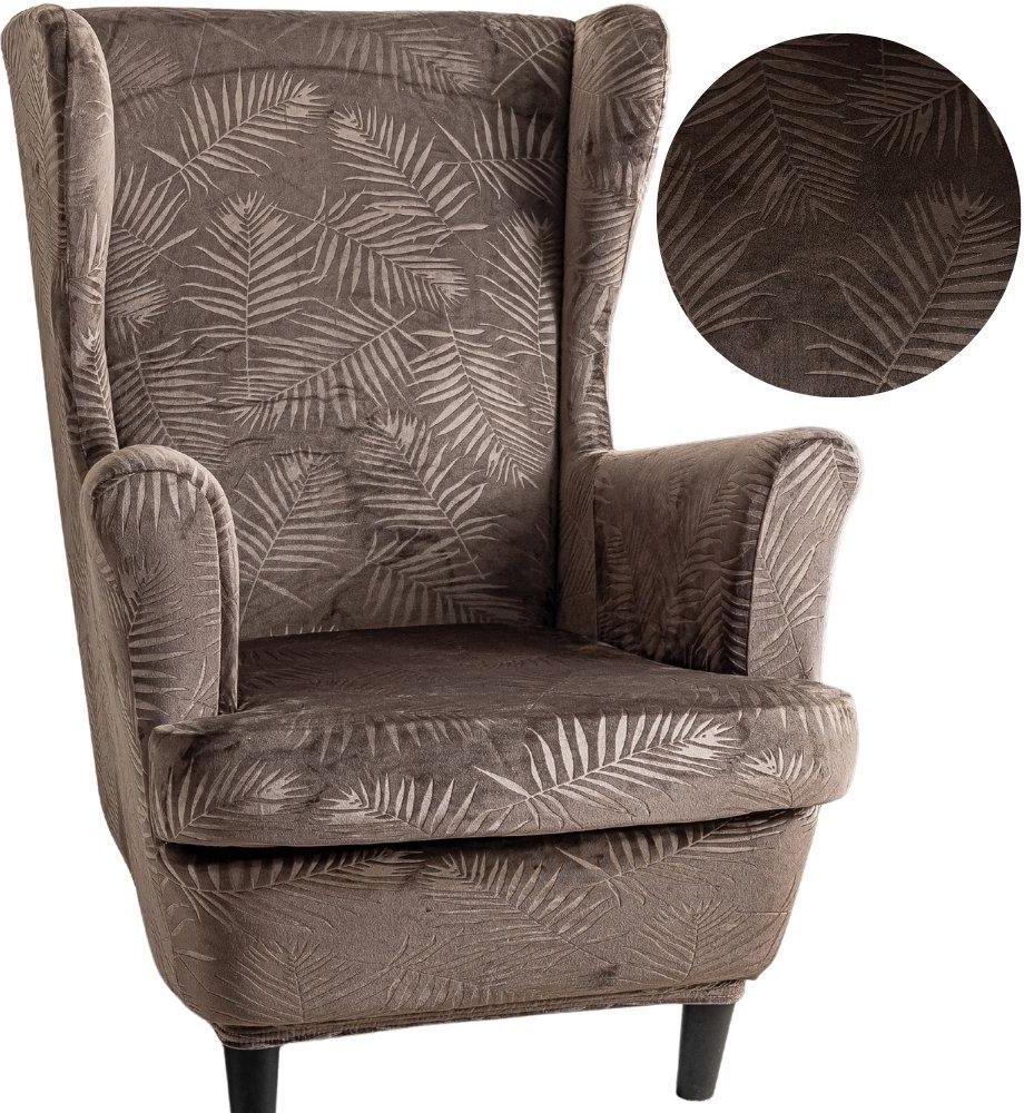 Domidekor Pokrowiec Na Fotel Uszak Welur Tłoczony Palmowe Liście Premium Elastyczny Brązowy Lidzbark Warmiński