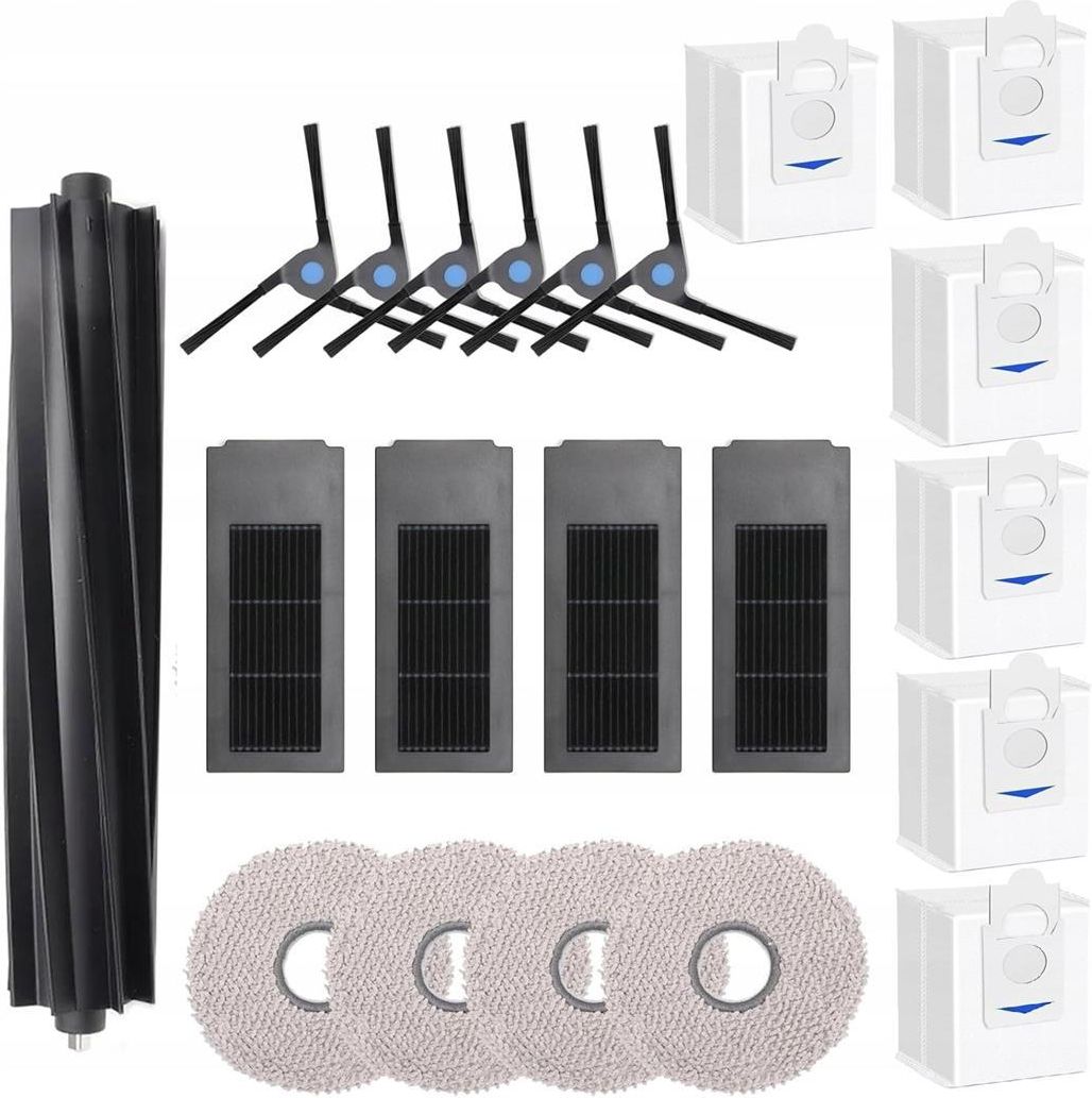 DUŻY ZESTAW Ecovacs Deebot X2 / Omni /Pro worki mopy filtry szczotki worki NR 672 Ten zestaw części zamiennych jest idealnie kompatybilny z odkurzaczami Ecovacs Deebot X2, X2 Omni, X2 Pro i DEX86, zapewniając kompleksowe odświeżenie Twojego urządzenia. Wysoka Jakość i Łatwa Wymiana Wymienna szczotka główna, wykonana z wysokiej jakości gumy ABS, gwarantuje skuteczne zbieranie zanieczyszczeń. Jej montaż jest niezwykle prosty – wystarczy ją szybko zatrzasnąć, bez użycia jakichkolwiek narzędzi. Skuteczne Czyszczenie Narożników Miękka silikonowa szczotka boczna została zaprojektowana tak, aby docierać głęboko w każdy zakamarek i krawędź. Dzięki niej usuniesz jeszcze więcej brudu, kurzu i innych zanieczyszczeń, pozostawiając Twoje podłogi nieskazitelnie czyste. Doskonała Filtracja i Świeżość Filtr, wykonany z wysokowydajnego materiału filtrującego, skutecznie zatrzymuje aż 99% kurzu, zapewniając czyste powietrze w Twoim domu. Dodatkowo, ściereczka do mopa usuwa ponad 99% kurzu i pomaga zredukować nieprzyjemne zapachy, sprawiając, że Twoje wnętrza będą nie tylko czyste, ale i świeże. Kompletny Zestaw W opakowaniu znajdziesz wszystko, czego potrzebujesz do pełnej konserwacji Twojego odkurzacza: 1 x szczotki główne 4 x filtry Hepa 6 x szczotek bocznych 4 x ściereczki do mopa 6 x worków Zadbaj o swój odkurzacz Ecovacs Deebot, zapewniając mu długie i efektywne działanie dzięki temu kompletnemu zestawowi części zamiennych!