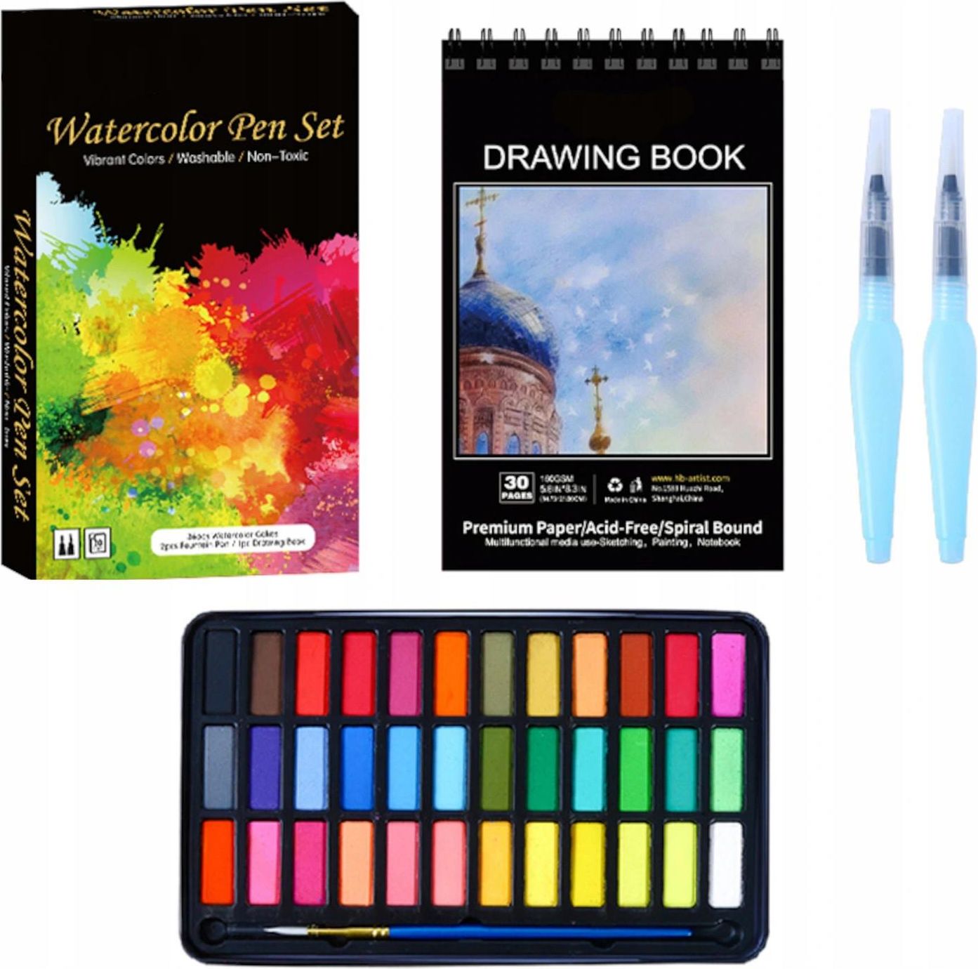 Farby Akwarelowe Wodne Zestaw 40w1 Blok Pędzele Lidzbark Warmiński