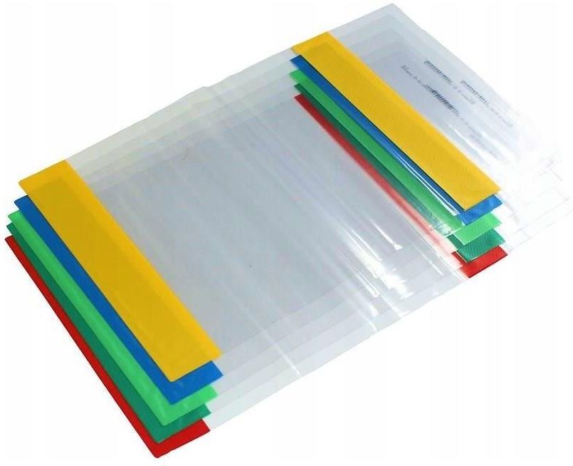 Okładki wykonane są z wysoko przezroczystej folii z kolorowymi zakładkami. Grubość folii: 0,12mm (gruba, okładki nie rwą się jak najtańsze dostępne u innych sprzedawców)! Kolory zakładek: niebieski, zielony, czerwony żółty (wybieramy losowo, kolory typowo uniwersalne dla chłopców i dziewczynek) …