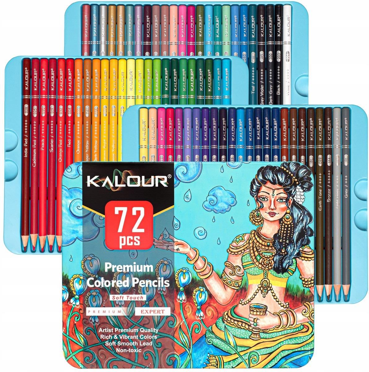 KALOUR 72 kolory Premium Expert + próbnik kolorów Zestaw kredek Kalour 72 Premium Expert. Kredki miękkie. Hit sprzedaży w USA teraz dostępne w Polsce. Bezkonkurencyjny stosunek jakości do ceny ! Rdzeń 3,3 mm – wysoce odporny na zużycie i złamania. Kredki odporne na światło ! Każda kredka zawiera numer i nazwę swojego koloru. Opakowanie umożliwia łatwy transport i porządkowanie kredek. Bogaty pigment ,miękki na bazie wosku, zapewnia świetne odwzorowanie barw. Umożliwiają dowolne blendowanie i mieszanie kolorów. Wykonanie z drewna lipowego. Marka : KALOUR Rozmiar: 23 / 18,5 / 3,2 cm Waga : 0,5 kg Praca wykonana kredkami Kalour premium expert 72 przez artystę alicjasz7 (inst)