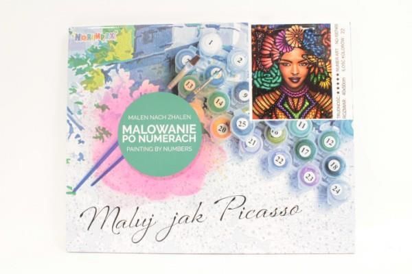 Malowanie po numerach Kobieta czarnoskóra w kwiatach Norimpex malowanie ✅ ✔️ Malowanie po numerach to zestaw, w którym obraz jest podzielony na segmenty, nadrukowane na płótnie. Po pomalowaniu pól wyznaczonymi kolorami, oczom malarza ukaże się obraz. Każdy jest oznaczony liczbą odpowiadającą …