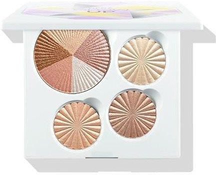 OFRA - Glow Up - Highlighter Palette - Paleta rozświetlaczy Glow Up - Highlighter Palette marki OFRA. Paleta rozświetlaczy. W jej skład wchodzi pełnowymiarowy rozświetlacz Beverly Hills oraz trzy mini wersje: Rodeo Drive, Blissful oraz Star Island. Produkty stworzone zostały przy zastosowaniu najnowszej technologii liquid-to-baked dzięki czemu nadają blaskowi nowe znaczenie. Ich jedwabista formuła jest intensywnie napigmentowana, a perłowe pigmenty doskonale odbijają światło dając efekt tafli i gwarantując 24 godzinne intensywne rozświetlenie. Mogą być używane na twarz, powieki, dekolt, jak i inne partie ciała. Całość umieszczono w eleganckim białym pudełku z lusterkiem pod pokrywką zamykającą. Paleta rozświetlaczy. Stworzona w technologii liquid-to-baked. Doskonale odbijają światło dając efekt tafli. Gwarantują 24 godzinne intensywne rozświetlenie. W SKŁAD ZESTAWU WCHODZĄ:- BEVERLY HILLS - złoty brąz, chłodny róż, perłowa biel, neutralny połysk i różowo-brzoskwiniowy,- STAR ISLAND - ciepła kość słoniowa,- RODEO DRIVE - szampański z nutą złota,- BLISSFUL - złoto brązowy z różowymi tonami. Atrybuty Waga netto - 22 g Wymiary zamkniętej palety - 12 cm x 12 cm x 1,7 cm