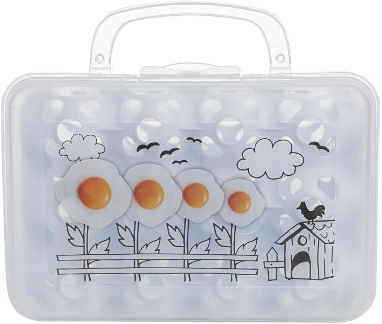 Pojemnik na jajka z uchwytem Plastikowa Wytłaczanka na 12 jajek Dzięki pojemnikowi jaja zachowają swoją świeżość oraz będą chronione przed przypadkowym stłuczeniem. Pojemnik na jajka to produkt, który doskonale odnajdzie się w każdej lodówce. Może pomieścić w sobie 12 jaj, chroniąc przed przypadkowym stłuczeniem, a dzięki rączce możesz także bezpiecznie je przewieźć. Wykonany z tworzywa sztucznego sprawia, że przechowywane jaja nie stracą swojej świeżości. Łatwe zamykanie, zapewnia komfort i wygodę z użytkowania. Wzór znajdujący się na pokrywie, wprowadza pozytywny nastrój i sprawia, że odrazu masz chęć na potrawę z jajek. UWAGA: JAJO ZE ZDJĘCIA NIE ZNAJDUJE SIĘ W ZESTAWIE ❗ Zdjęcia w aukcji mają charakter jedynie poglądowy UWAGA: Jeżeli zdecydują się Państwo na skorzystanie z odstąpienia od umowy w ciągu 14 dni, towar musi zostać odesłany w stanie NIENARUSZONYM, z pudełkiem, bez uszkodzeń, z wszystkimi zabezpieczeniami, typu folia zabezpieczająca. W innym wypadku zwrot może zostać odrzucony lub koszty zwrotu za towar obniżone Odesłany towar musi być nadal towarem PEŁNOWARTOŚCIOWYM ❗