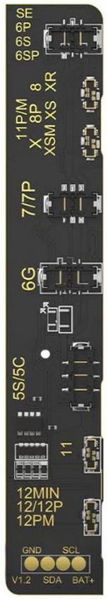 Opis i cechy produktu: Dodatkowa płytka do programatora Apollo do użycia z bateriami iPhone serii 6-12 https://www.youtube.com/watch?v=DPNzOm--cJQ Producent: QianLi Dedykowana do programatora: Apollo Zestaw zawiera: 1x Płytka do baterii iPhone 6-12 Uwaga: Do poprawnego odczytywania i zapisu danych baterii od iPhone 11 i wyższych modeli, należy podłączyć dodatkowo taśmę Tag-On Flex dostępną w osobnej ofercie