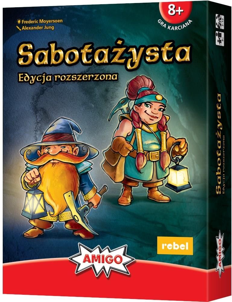SABOTAŻYSTA: EDYCJA ROZSZERZONA (2025) Kultowa gra o szukaniu bryłek złota – teraz w jednym pudełku z dodatkiem! Gdy poszukiwacze złota schodzili w głąb kopalni, nagle zgasła latarnia, a cały tunel pogrążył się w ciemności. To musiał być sabotaż! Wygląda na to, że ktoś z grupy knuje przeciwko pozostałym… Czy poszukiwaczom uda się w porę odnaleźć złoto? A może to sabotażysta zwycięży, wyprowadzając pozostałych w pole?   Liczba graczy 2-12 osób Wiek graczy Od 8 lat Czas gry Ok. 30 min.   Sabotażysta: Edycja rozszerzona to specjalne wydanie kultowej gry o szukaniu bryłek złota. Zawiera pełną emocji grę podstawową, w której wcielamy się w górników przemierzających głębokie tunele albo w sabotażystów, którzy na każdym kroku utrudniają im pracę. Oprócz tego w pudełku znajduje się też dodatek Sabotażysta 2, który nie tylko wprowadza nowe karty korytarzy i akcji, ale też pozwala na rozgrywki drużynowe i zaproszenie do wspólnej gry blefu aż 12 osób jednocześnie! Na czym to polega? W grze podstawowej w swojej turze musisz użyć 1 karty. Oznacza to:  Dodanie karty do labiryntu korytarzy tak, by pasowała do poprzednich i kontynuowała drogę. Położenie przed sobą lub innym graczem karty akcji, która będzie pomocna lub wręcz przeciwnie – utrudni mu grę. Znajdziesz wśród nich naprawy i niszczenie narzędzi, wywoływanie osuwisk czy praktyczną mapę. Spasowanie poprzez odrzucenie 1 zakrytej karty na stos kart odrzuconych. Następnie musisz dobrać wierzchnią kartę z talii na rękę. Twoja tura kończy się i rozpoczyna się tura następnego gracza. Proste? No pewnie! W ten sposób gramy do momentu, gdy talia się wyczerpie, a żadnemu z Was nie pozostały na ręce karty, które może zagrać. Górnicy zwyciężają rundę, jeśli udało im się stworzyć nieprzerwany korytarz prowadzący od karty startu do karty celu, na której jest przedstawiony skarb. W przeciwnym razie zwyciężają sabotażyści! Zawarte w pudełku rozszerzenie Sabotażysta 2 wprowadza karty, które zmieniają nieco nasze możliwości i zasady rozgrywki. Główny cel pozostaje jednak ten sam: zwycięży osoba, która zgromadzi najwięcej bryłek złota! Dlaczego pokochasz tę grę? To prosta i niezwykle przyjemna karcianka, w której musisz poznać jedynie kilka zasad i właściwie od razu możesz zacząć zabawę.  Blef i przeciwstawne role pozwalają wypróbować różne strategie, a możliwość zabawy nawet w 12 osób dodatkowo podkręca emocje towarzyszące zabawie. Edycja zawierająca zarówno grę podstawową, jak i dodatek, świetnie sprawdzi się dla wszystkich, którzy już znają świat Sabotażysty ale nie mają własnego egzemplarza, ale również na początek przygody, by od razu mieć dostęp do wszystkich możliwości, jakie oferuje ta gra.  .Rebel4 ul { color:black; } .Zasady .lnd_container-grid > div .lnd_grid-items { display: grid; grid-template: 1fr/1fr; height: 170px; align-items: center; cursor: pointer; margin: 10px; } .Zasady .lnd_container-grid > div .lnd_grid-items:hover { background:#e0d7cc; border-radius: 30px; text-align: center; } .Zasady .lnd_container-grid > div .lnd_grid-items > div:last-child { opacity: 0; grid-column: 1; grid-row: 1; width: 100%; } .Zasady .lnd_container-grid > div .lnd_grid-items > div:first-child { grid-column: 1; grid-row: 1; width: 100%; } .Zasady .lnd_container-grid > div .lnd_grid-items:hover > div:first-child { opacity: 0; } .Zasady .lnd_container-grid > div .lnd_grid-items:hover > div:last-child { opacity: 1; } .Zasady .lnd_col-2 { width: 20%; } .Zasady .lnd_container-grid > div .lnd_grid-items:hover .lnd_content { font-size: 16px; padding: 10px; } @media only screen and (max-width: 720px) { .Zasady .lnd_container-grid > div .lnd_grid-items { height: auto; } }