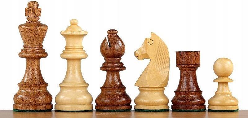 Figury szachowe Timeless (German) Akacja indyjska/bukszpan 3,5 cala z dodat Sunrise Chess & Games W skład zestawu wchodzą 34 bierki szachowe, 16 jasnych i 16 ciemnych oraz dodatkowe hetmany: 1 jasny oraz 1 ciemny. Przedstawiamy Państwu jeden z najbardziej znanych kompletów figur szachowych na świecie. Są to klasyczne figury szachowe Timeless, wykonane z bukszpanu i akacji indyjskiej. Zostały stworzone w popularnym i lubianym przez szachistów stylu German Staunton, a grano nimi i nadal gra się na największych turniejach szachowych - Mistrzostwach Świata, Olimpiadach FIDE, turnieju w Linares, Dortmundzie, turnieju Tata Steel Chess w Wijk aan Zee. Wszystkie figury są dokładnie wypolerowane, podklejone filcem i solidnie obciążane. Rozmiar tych figur odpowiada naszym figurom Staunton Nr 5. Do tego zestawu idealnie pasuje drewniany kuferek Staunton Nr 6 oraz deski szachowe o polach 45-50 mm. Szachownice i kuferki pasujące do figur German 3,5 cala znajdziesz w zakładce "Powiązane produkty", która znajduje się poniżej na stronie. Aby stworzyć idealny zestaw szachowy skorzystaj z naszego przewodnika po rozmiarach szachów - https://www.szachowo.pl/rozmiar-szachow-przewodnik-pm-56.html Oczywiście, pamiętaj, że jesteśmy dostępni na czacie! Jeśli masz jakiekolwiek pytania, jesteśmy tutaj, aby służyć wsparciem i odpowiedziami. Czekamy na Twoje wiadomości! Prezentowana na zdjęciach deska nie należy do kompletu i można ją kupić oddzielnie w naszym sklepie. HEIGHT OF THE KING: 91 mm DIAMETER OF THE KING'S BASE: 33 mm VERTICAL HEIGHT: 46 mm DIAMETER OF THE BASE OF THE RISER: 26 mm ADDITIONAL HETMANS: YES SIZE: No. 5 (king approx.90mm) Manufacturer code: CHI101 S350 DQ WYSOKOŚĆ KRÓLA: 91 mm ŚREDNICA PODSTAWY KRÓLA: 33 mm WYSOKOŚĆ PIONA: 46 mm ŚREDNICA PODSTAWY PIONA: 26 mm DODATKOWE HETMANY: TAK ROZMIAR: Nr 5 (król ok.90mm) Kod producenta: CHI101 S350 DQ