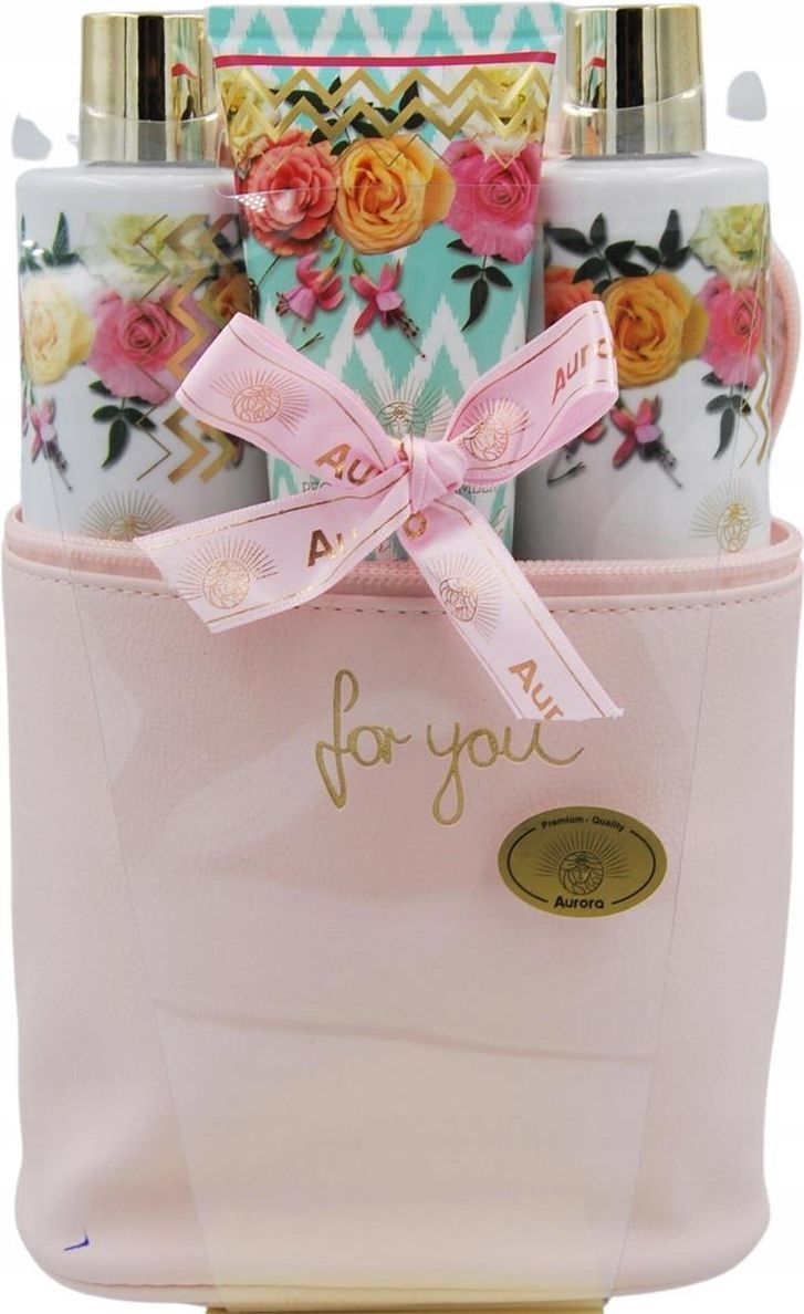 Zestaw prezentowy kosmetyczka - Piwonia i wiśniowy bursztyn (4 elementy) - AURORA ❤️ Krem do rąk o pojemności 100ml To doskonały sposób na zachowanie miękkich i gładkich dłoni. ❤️ Żel pod prysznic o pojemności 200ml To aromatyczna kąpiel, która nie tylko oczyszcza skórę, ale także otula ją delikatnym zapachem kwitnących Piwonii, pozostawiając uczucie świeżości i odprężenia. ❤️ Balsam do ciała o pojemności 200ml To produkt, który nie tylko nawilża skórę, ale także ją pielęgnuje, pozostawiając ją jedwabiście gładką i pięknie pachnącą. ❤️ Gąbka do ciała to dodatek Który umożliwia dokładne oczyszczenie skóry podczas kąpieli, zapewniając przyjemność i komfort. Zestaw prezentowy Aurora 4 elementy w wariantach Piwonia to nie tylko idealny prezent dla bliskiej osoby, ale także doskonały sposób na codzienną pielęgnację w piękny i aromatyczny sposób.
