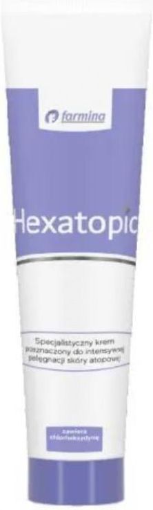Charakterystyka Hexatopic 100 ml to specjalistyczny krem przeznaczony do intensywnej pielęgnacji skóry atopowej, wrażliwej i problematycznej, skłonnej do pękania i nadmiernego przesuszenia. Jego formuła tworzy na powierzchni skóry ochronną warstwę zapobiegającą utracie wilgoci, poprawia elastyczność i komfort, a enthaltena chlorheksydyna działa antybakteryjnie, ograniczając namnażanie drobnoustrojów zaostrzających objawy AZS. Składniki Aqua, Paraffinum Liquidum, Isopropyl Myristate, Glycerin, Cetearyl Alcohol, Ceteareth-20, Chlorhexidine Digluconate, Benzalkonium Chloride, Disodium Phosphate, Sodium Phosphate, Phenoxyethanol; Wskazania i działanie Hexatopic koi podrażnienia oraz świąd skóry atopowej, zmniejsza zaczerwienienia i wspomaga regenerację uszkodzonego naskórka. Dzięki zawartości substancji nawilżających przywraca właściwą równowagę hydrolipidową skóry, wspierając odbudowę jej naturalnej bariery ochronnej. Chlorheksydyna wykazuje działanie antybakteryjne, ograniczając rozwój drobnoustrojów odpowiedzialnych za zaostrzenia atopowego zapalenia skóry i wydłużając czas remisji zmian. Stosowanie Nałożyć niewielką ilość kremu na oczyszczoną i osuszoną skórę. Delikatnie wmasować aż do całkowitego wchłonięcia. Stosować 2–3 razy dziennie, w zależności od stopnia podrażnienia skóry. Przeciwwskazania Nadwrażliwość na którykolwiek składnik preparatu stanowi przeciwwskazanie do stosowania kremu. Ostrzeżenia i środki ostrożności Unikać kontaktu z oczami; w razie dostania się produktu do oczu przemyć dużą ilością wody. Nie stosować na uszkodzoną skórę (otwarte rany, owrzodzenia). Przed pierwszym użyciem można wykonać próbę uczuleniową, aplikując krem na niewielki fragment skóry i obserwując reakcję przez 24 godziny. Działania niepożądane W rzadkich przypadkach u osób nadwrażliwych mogą wystąpić reakcje alergiczne lub miejscowe podrażnienia skóry, takie jak pieczenie czy świąd. W razie wystąpienia objawów niepożądanych należy przerwać stosowanie i skonsultować się z lekarzem. Przechowywanie Przechowywać w temperaturze poniżej 25 °C, w suchym miejscu, w oryginalnym opakowaniu. Chronić przed światłem i wilgocią. Przechowywać w sposób niedostępny dla dzieci. Producent FARMINA Sp. z o.o.