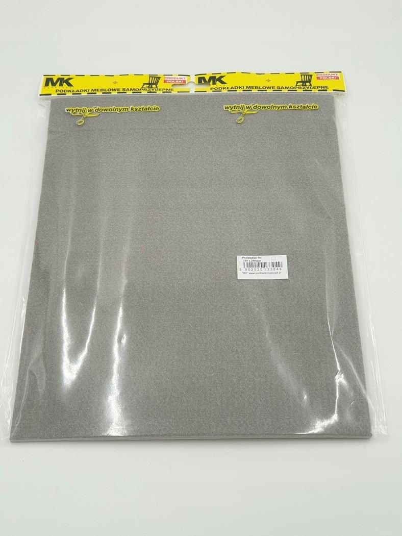 Podkładki filcowe MK premium to najlepszy sposób ochrony podłogi przed zarysowaniami. Są wykonane z grubego, bo 5 mm filcu. Filc jest mocno sprasowany, co powoduje, że podkładki są odporne na duże obciążenia. A to z kolei gwarantuje, że będą nam długo służyły. Są łatwe w montażu. Wystarczy, że odkleimy podkładkę od papieru, na którym się znajduje. W ten sposób odsłonimy powierzchnie podkładki pokrytą klejem. Po dociśnięciu jej stroną z klejem do nogi krzesła, stołu lub innego mebla powodujemy, że podkładka jest już zamocowana. Użyty w naszych podkładkach klej jest wyjątkowo mocny. Jednak należy pamiętać, aby podkładkę nakładać na suchą i oczyszczoną z kurzu lub pyłu powierzchnię. Oferowana podkładka pozwala na wycięcie dowolnego kształtu co ma duże znaczenie w przypadku nietypowych mebli lub wykorzystania podkładki do innych celów. Podkładkę wysyłamy na blistrze zawierającym 1 szt. Podkładki filcowe MK Premium to nie tylko ochrona podłogi przed zarysowaniami, ale także doskonały sposób na: tłumienie drgań, sposób na poziomowanie mebli, wytłumianie trzaskania drzwi, Wymiary podkładki: Długość - 31 cm Szerokość - 25 cm Grubość - 0,5 cm Większość tanich podkładek dość szybko ulega zużyciu. Nasze podkładki z uwagi na gęstość i grubość filcu będą służyły długo chroniąc Twoje drewniane podłogi.