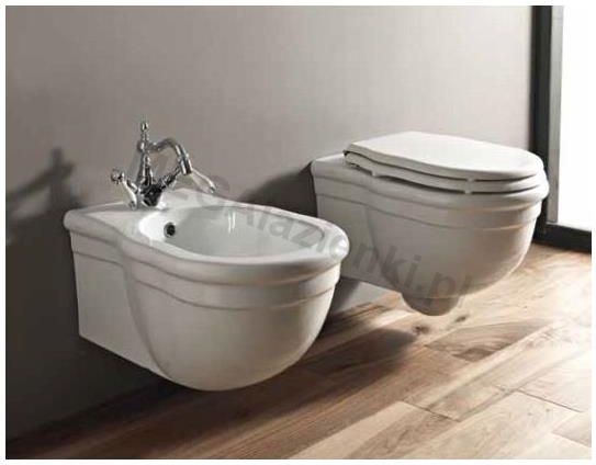 Artceram Hermitage miska WC wisząca 55x36 cm biała HEV010 01;00 Miska WC wisząca Artceram w stylu Art Deco o wymiarach 550x360 mm. podłączenie poziome. Deska wolnoopadająca HEA005 sprzedawana oddzielnie. Miska toaletowa wykończona w białym połysku. Cechy miski WC Hermitage w komplecie z zestawem …