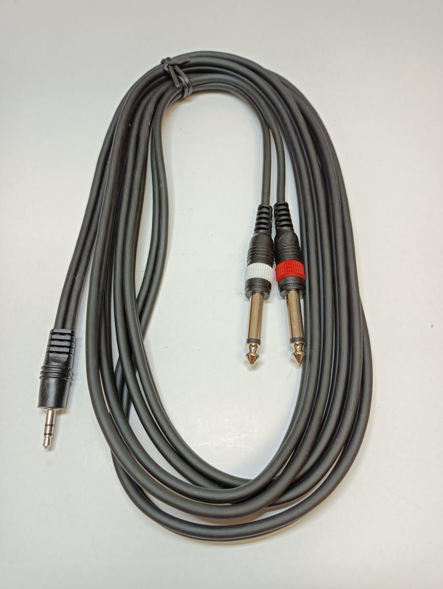 Wysokiej jakości kabel audio mający z jednej strony jack stereo 3,5mm i rozgałęziony na dwa jacki mono 6,3mm o długości 3m.