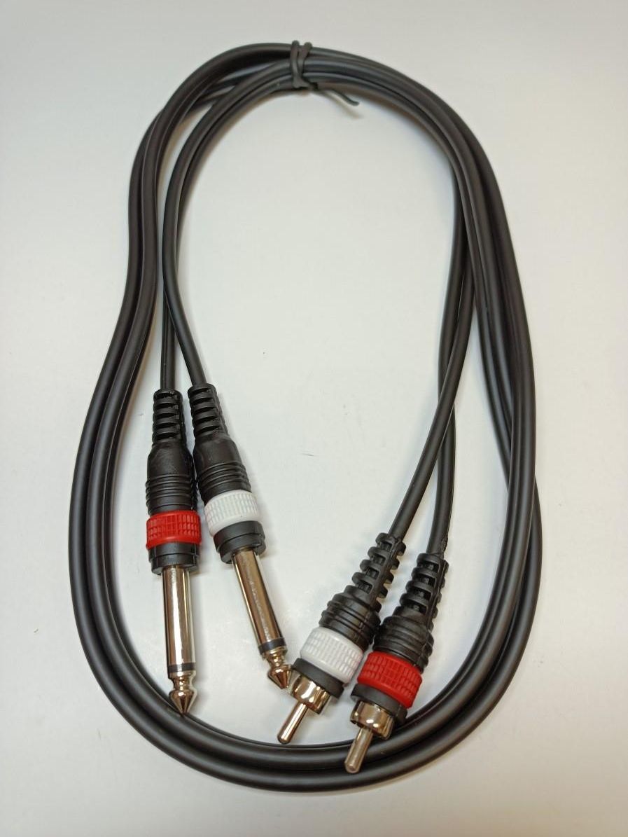 Wysokiej jakości kabel audio mający z jednej strony dwa złącza RCA i rozgałęziony na dwa jacki mono 6,3mm o długości 1,5m.