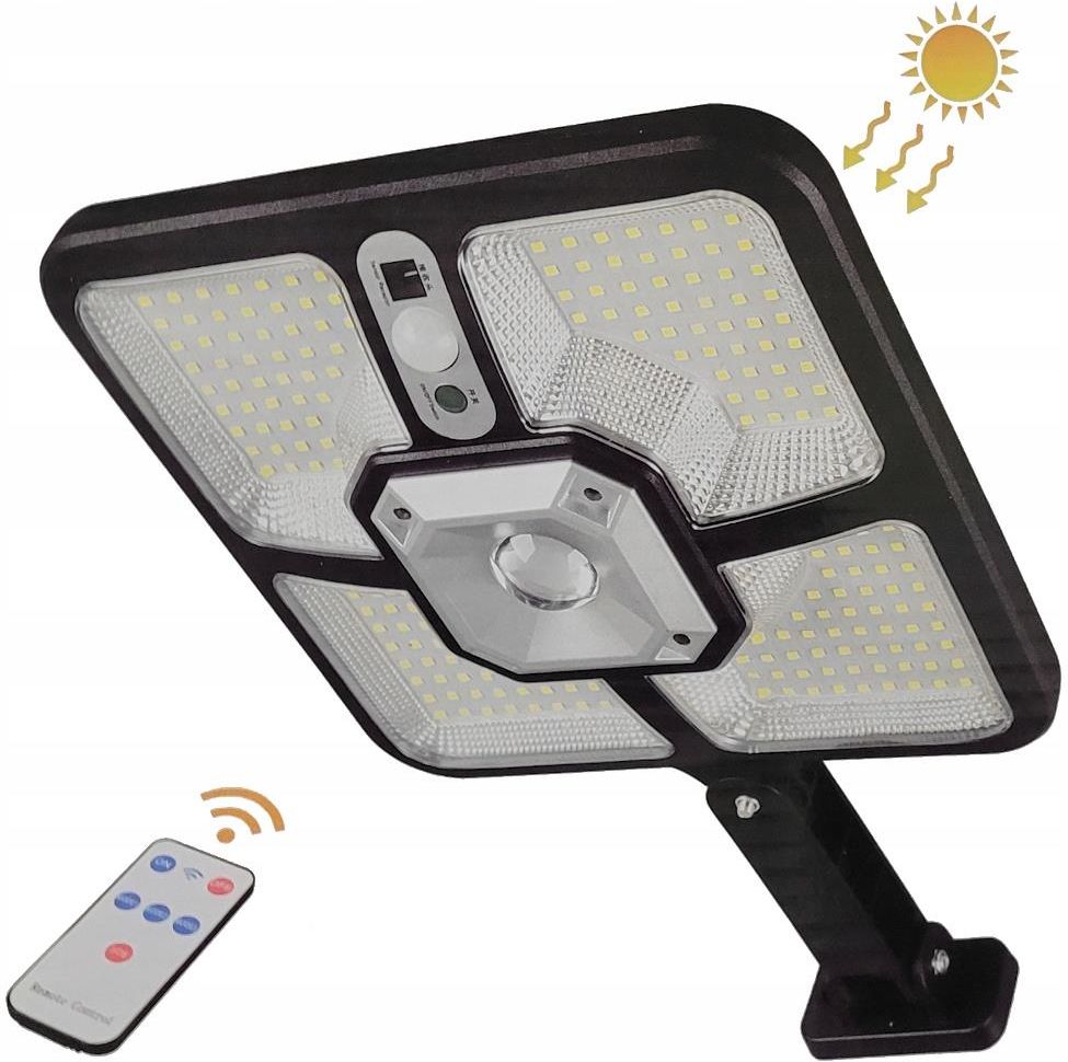 Lampa uliczna z czujnikiem zmierzchu i ruchu Ekologiczny i energooszczędny sposób oświetlenia Cechy produktu: Lampa zasilana energią słoneczną - jest ekologiczna i energooszczędna, zużywa 10 razy mniej energii niż tradycyjne oświetlenie Najnowszej generacji panel solarny monokrystaliczny - silikonowy zapewnia ładowanie akumulatora nawet w pochmurne dni. Akumulator o sprawia, że latarnia może świecić całą noc - w zależności od pogody. Czujnik zmierzchu (w solarze) załączy lampę po zmroku i wyłączy o świcie. Wyposażona w diody SMD oraz COB Idealnie oświetli parking, plac budowy, ulicę, alejkę parkową. Nadaje się przed garaż, magazyn, w gospodarstwach rolnych i agroturystyce. Obudowa wykonana z tworzywa Wbudowany czujnik światła / zmierzchu Wbudowany czujnik ruchu Lampa jest wodoodporna i odporna na wstrząsy Instalacja nie wymaga okablowania, lampa posiada wbudowany akumulator 3 tryby świecenia W zestawie pilot, stojak oraz śruby do montażu Specyfikacja: Kąt wychwytywania ruchu: 120° Barwa światła: zimna biała Wymiary lampy: 22,5 x 22,5 x 4 cm Długość z uchwytem: 36 cm 4 panele świetlne SMD (204 diody) oraz 1 panel świetlny COB Czas świecenia przy pełnym naładowaniu: do 8 godzin Tryby świecenia: MODE1 - Lampa jest wyłączona, po zmierzchu i wykryciu ruchu włącza się pełna moc MODE2 - Lampa po zmroku włącza 30% mocy, po wykryciu ruchu włącza się pełna moc MODE3 - Lampa po zmroku włącza 50% mocy