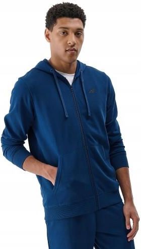 Męska bluza dresowa firmy 4F model: 4FWMM00TSWSM1768 kolor: ciemny niebieski 46S Bluza dresowa męska, rozpinana, z kapturem - idealnie sprawdzi się jako element zarówno casualowych, jak i sportowych stylizacji. Posiada krój regular, który wygodnie dopasowuje się do sylwetki. Dzianina dresowa french …