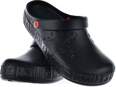 Męskie klapki firmy BIG STAR model: II175001 kolor: czarny Wygodne męskie klapki firmy BIG STAR; wykonane z wysokogatunkowego tworzywa sztucznego. Otwory w cholewce pozwalają na odpowiednią wentylację obuwia. Ruchomy paseczek zabezpiecza przed przesuwaniem się stopy. Podeszwa z gumy gwarantuje dobrą amortyzację, anatomiczna wkładka o zróżnicowanej strukturze zwiększa komfort użytkowania. Idealne na basen, plażę oraz do codziennego użytkowania; świetnie sprawdzą się w ciepłe, słoneczne dni. Szczegóły produktu: materiał: wysokogatunkowe tworzywo sztuczne podeszwa: guma profilowana wkładka otwory wentylacyjne ruchomy paseczek dla lepszego komfortu Rozmiar - długość wkładki 41- 26cm 42- 26,5cm 43- 27cm 44- 28cm 45- 28,5cm 46- 29cm Rozmiary mogą się różnić +/- 2mm