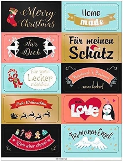 Naklejki Świąteczne Dekoracyjne na Prezenty 10szt Towar powystawowy, outletowy, urządzenia mogą posiadać opakowania zastępcze lub oryginalne. Naklejka ozdobna na prezent Papier samoprzylepny, format arkusza 16,9 x 22,4 cmMotyw: Wünsche1 arkusz, zapakowany w folię termokurczliwą z nagłówkiem …