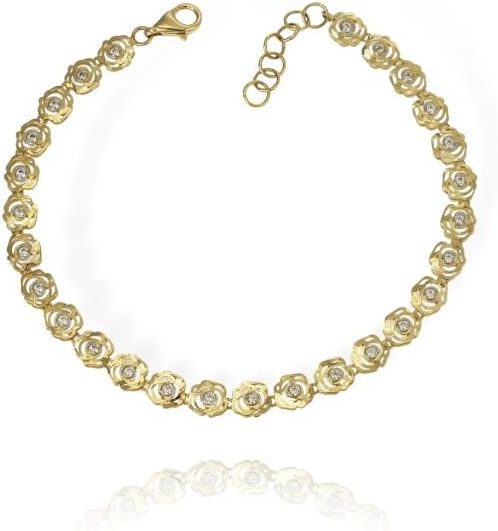 Norbisrebro Złota Ażurowa Bransoletka Kwiaty Róże z Cyrkoniami - Pr. 585 Limanowa