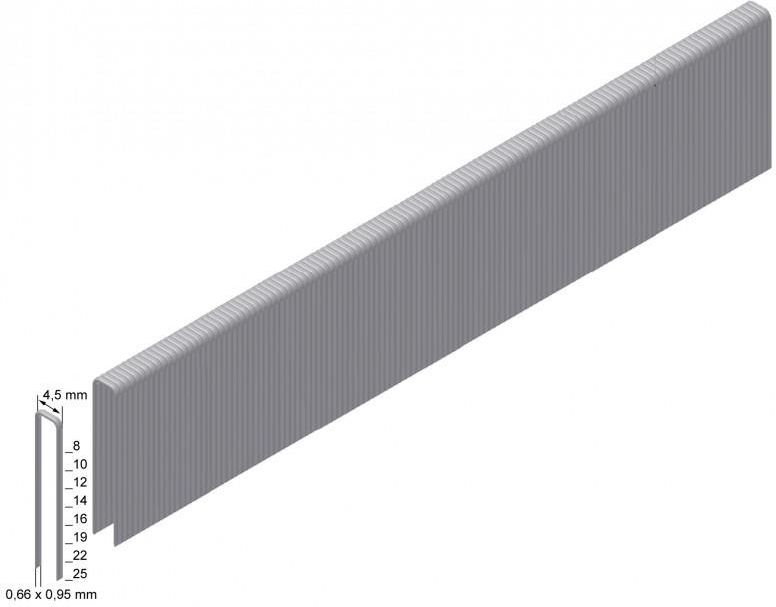 długość nóżki: 8 mm szerokość grzbietu: 4,5 mm wymiar drutu: 0,66 x 0,95 mm