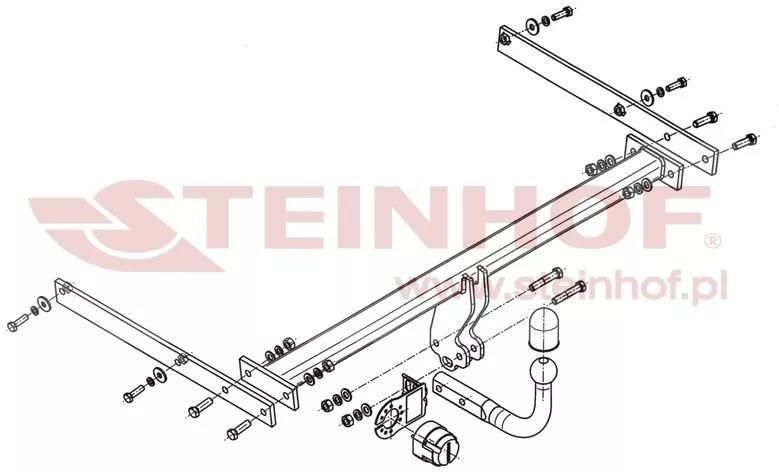 Hak Odkręcany STEINHOF F-249 Dane techniczne Homologacja: E20 Rodzaj kuli: Odkręcana Parametr "D" [kN]: 10 Max. uciąg [kg]: 1800 Max. nacisk pionowy [kg]: 75 Hak Odkręcany STEINHOF F-249 pasuje do poniższych aut:Kliknij tutaj aby rozwinąć listę(kliknij markę aby sprawdzić kompatybilne modele) FORD FORD Focus III 5D (oprócz ST) [ 2011-2018 ] Wymaga zdjęcia / podcięcia zderzaka: TAK / NIE FORD Focus III 5D (oprócz ST) [ 2011-2018 ] Wymaga zdjęcia / podcięcia zderzaka: TAK / NIE Hak odkręcany STEINHOF to praktyczne i trwałe rozwiązanie dla kierowców, którzy cenią sobie niezawodność i prostotę użytkowania. Jego solidna budowa gwarantuje bezawaryjną pracę, a jednocześnie zapewnia komfort i pewność podczas codziennego użytkowania. Zawsze gotowy do działania – dokładnie wtedy, gdy jest potrzebny. Model odkręcany nie zawiera żadnych mechanizmów ani ruchomych części, dzięki czemu jest całkowicie bezobsługowy i odporny na uszkodzenia. Każdy hak STEINHOF jest projektowany z myślą o konkretnym modelu pojazdu, co zapewnia idealne dopasowanie bez konieczności cięcia lub spawania elementów podwozia. To rozwiązanie doskonale sprawdza się w wielu sytuacjach – od holowania przyczep, przez transport rowerów, aż po montaż dodatkowych akcesoriów. Gdy hak nie jest potrzebny, można go w prosty sposób zdemontować, odkręcając kilka śrub. Zwykle jednak może pozostać zamocowany na stałe, nie przeszkadzając w codziennym użytkowaniu auta. Wszystkie haki holownicze STEINHOF są zabezpieczane trwałą powłoką proszkową, która chroni stal przed korozją i działaniem czynników atmosferycznych. Wykorzystanie wysokiej jakości materiałów gwarantuje bezpieczeństwo, trwałość i pełną niezawodność w każdych warunkach eksploatacji – a przy tym w bardzo atrakcyjnej cenie. Dodatkowo, produkty STEINHOF objęte są 2-letnią gwarancją producenta, co potwierdza ich jakość i dbałość o użytkownika. Co zawiera zestaw Belkę haka idealnie dopasowaną do Twojego auta Kulę odkręcaną Zestaw montażowy (wsporniki, śruby, podkładki, etc.) Osłonkę kuli (kapturek) Homologację - tabliczka znamionowa na belce - wymagana do rejestracji! Podstawka pod gniazdo elektryczne Instrukcja montażu Hak standardowo nie zawiera w zestawie wiązki elektrycznej. Odpowiednio dopasowane zestawy elektryczne znajdziesz poniżej. Producent lub osoba odpowiedzialna GRUPA STEINHOF SPÓŁKA Z OGRANICZONĄ ODPOWIEDZIALNOŚCIĄ Przemysłowa 27A 33-100 Tarnów sekretariat@steinhof.plOstrzeżenia dotyczące bezpieczeństwa: Montaż wyłącznie przez wykwalifikowany warsztat. Nie przekraczać maksymalnego uciągu i nacisku na kulę określonych przez producenta. Przed każdą jazdą sprawdzić mocowanie i stan haka. Nie używać haka z oznakami uszkodzenia lub luzami. Nie modyfikować elementów haka ani mocowań. Regularnie kontrolować momenty dokręcenia i stan połączeń. Używać wyłącznie do holowania pojazdów zgodnych z homologacją.