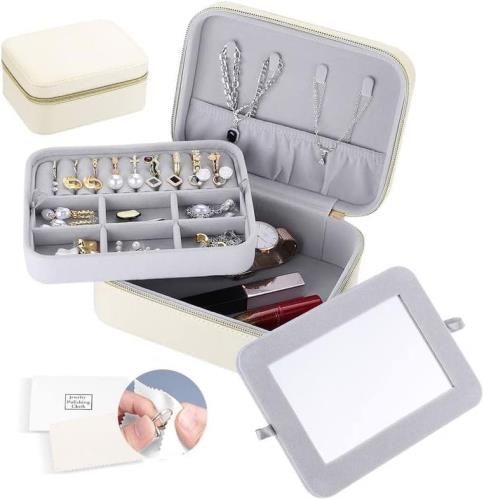 Produkt fabrycznie nowy, nieużywany w oryginalnym opakowaniu.Przechowuj swoje ulubione biżuterie w elegancki sposób dzięki temu podróżnemu pudełku na biżuterię. Z dwiema warstwami i wyjmowanym lusterkiem do makijażu, ten praktyczny organizer zapewnia nie tylko bezpieczne przechowywanie, ale także wygodę użytkowania w podróży lub na co dzień.Funkcjonalność i Pojemność:Dzięki dwóm warstwom i odpowiedniemu podziałowi, to pudełko na biżuterię oferuje dużą pojemność, umożliwiając przechowywanie różnorodnych rodzajów biżuterii, szminek, zegarków i innych drobiazgów. Idealne do podróży lub codziennego użytku.Wyjmowane Lusterko do Makijażu:Wbudowane, wyjmowane lusterko pozwala na szybkie poprawki makijażu w dowolnym miejscu i czasie, dodając praktyczny element do tego eleganckiego pudełka.Trwałe i Stylowe Wykończenie:Wykonane z wysokiej jakości skóry PU i miękkiego aksamitu, to pudełko jest nie tylko wytrzymałe i łatwe w czyszczeniu, ale także eleganckie w swoim wyglądzie. Solidny zamek błyskawiczny zapewnia bezpieczne przechowywanie biżuterii.Przenośny i Uniwersalny:Dzięki przenośnym wymiarom i niewielkiej wadze, można łatwo nosić to pudełko w torebce lub bagażu podczas podróży. Doskonałe do wyjazdów służbowych, weekendowych wypadów czy codziennego użytku.Idealny Prezent:To pudełko na biżuterię to nie tylko praktyczny dodatek, ale także doskonały prezent dla przyjaciół i rodziny, który docenią zarówno podczas podróży, jak i w codziennym użytkowaniu.Materiał: Skóra PU, aksamitKolor: BiałyMarka: FirelexFunkcja Specjalna: Duża pojemność, niewielka waga, przenośna, wymienna, solidnaTyp Zamknięcia: Zamek błyskawicznyWaga przedmiotu: 430 gramówSpecyfikacja: Rozmiar - 17,5 x 13,5 x 8 cmZawartość opakowania: 1 x Pudełko na biżuterię (biżuteria nie jest zawarta)