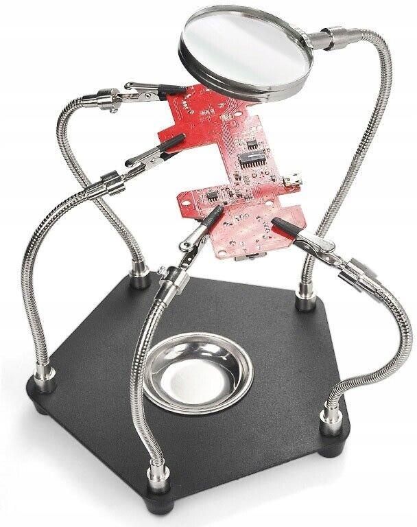 Rosfix Trzecia ręka z łupą - uchwyt montażowy do lutowania ✅ Zdejmowana lupa i 4 klipsy z krokodylkami: W zestawie znajduje się lupa oraz cztery klipsy które można łatwo zdjąć i dostosować do potrzeb. ✅Soczewka na Regulowanym Ramieniu dla Dodatkowego Powiększenia: Dodatkowo, podstawa została …
