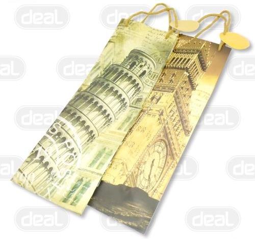Torebka na butelkę ozdobna 12szt. Torebka ozdobna na butelkę, laminowana, nowoczesne wzornictwo, mocna i wytrzymała. wymiary: - szerokość: 12 cm - wysokość: 36 cm - głębokość: 9 cm. Cena za opakowanie 12 szt.