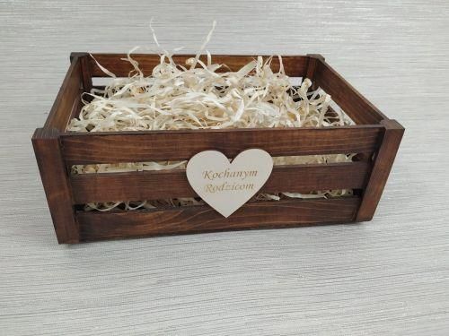 Skrzynka na podziękowanie dla rodziców, mamy, taty. Napisy grawerowane laserowo dzięki czemu są trwałe. Wymiary: Wysokość: 11,5 cm Szerokość: 32 cm Długość: 21 cm Materiał: Drewno(sklejka) Dostępne kolory: Surowy(drewno), Biały, brązowy Można zmienić tekst na np. Kochanemu Tacie, Kochanej Mamie itp. W polu (tekst) proszę napisać jaki tekst wygrawerować.