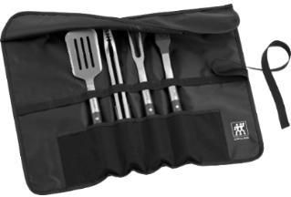 Grillowanie właśnie stało się pięciokrotnie lepsze: Zestaw narzędzi do grillowania z serii ZWILLING BBQ+ zawiera wszystkie niezbędne akcesoria najwyższej jakości, które podniosą poziom Twojego grillowania. Zestaw zawiera szpatułkę, szczypce do grilla, widelec do grilla oraz pędzel do natryskiwania. Wszystkie narzędzia do grillowania wykonane są z wysokiej jakości stali nierdzewnej. Dzięki temu są one wytrzymałe i trwałe, dzięki czemu będziesz mógł z nich korzystać przez wiele lat. Wszystkie narzędzia do grillowania mają długie uchwyty. Pozwalają one na pracę z odpowiedniego odległości, co czyni grillowanie jeszcze bezpieczniejszym. Po prostu zawieś narzędzia do grillowania na grillu przy pomocy praktycznej pętli ze stali nierdzewnej, aby były zawsze w zasięgu ręki. A ponieważ nikt nie lubi kończyć doskonałego wieczoru z grillowania sprzątaniem, narzędzia do grillowania można łatwo wyczyścić w zmywarce. Zestaw zawiera również praktyczne etui do przechowywania, dzięki któremu te wysokiej jakości pomocniki będą bezpiecznie przechowywane. CECHY SZCZEGÓLNE 5-częściowy zestaw zapewniający doskonałe wrażenia z grillowania Trwałe narzędzia do grillowania wykonane z wysokiej jakości stali nierdzewnej Z wyjątkowo długimi uchwytami do bezpiecznego grillowania Uchwyty w atrakcyjnej konstrukcji z trzema nitami Z pętlami ze stali nierdzewnej do przechowywania przy grillu Łatwe czyszczenie ręczne, można myć w zmywarce Z praktycznym opakowaniem zapewniającym oszczędność miejsca i bezpieczne przechowywanie WYMIARY Długość: 50.5 cm Wysokość: 7.8 cm Szerokość: 14.5 cm Masa: 1.90 kg