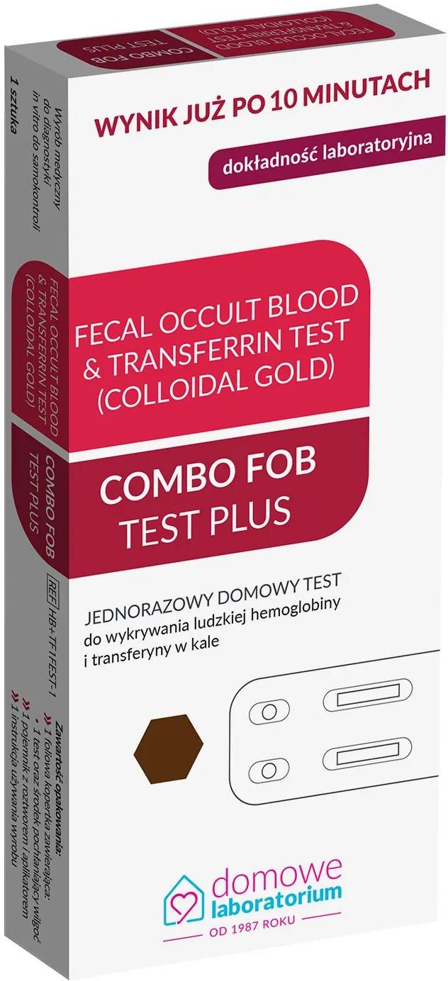 Produkt Domowe Laboratorium Combo Fob Plus, test do wykrywania hemoglobiny i transferyny w kale, 1 sztuka do kupienia w Gemini. Combo FOB Test Plus Domowe Laboratorium to szybki sposób na domowe wykrycie ...