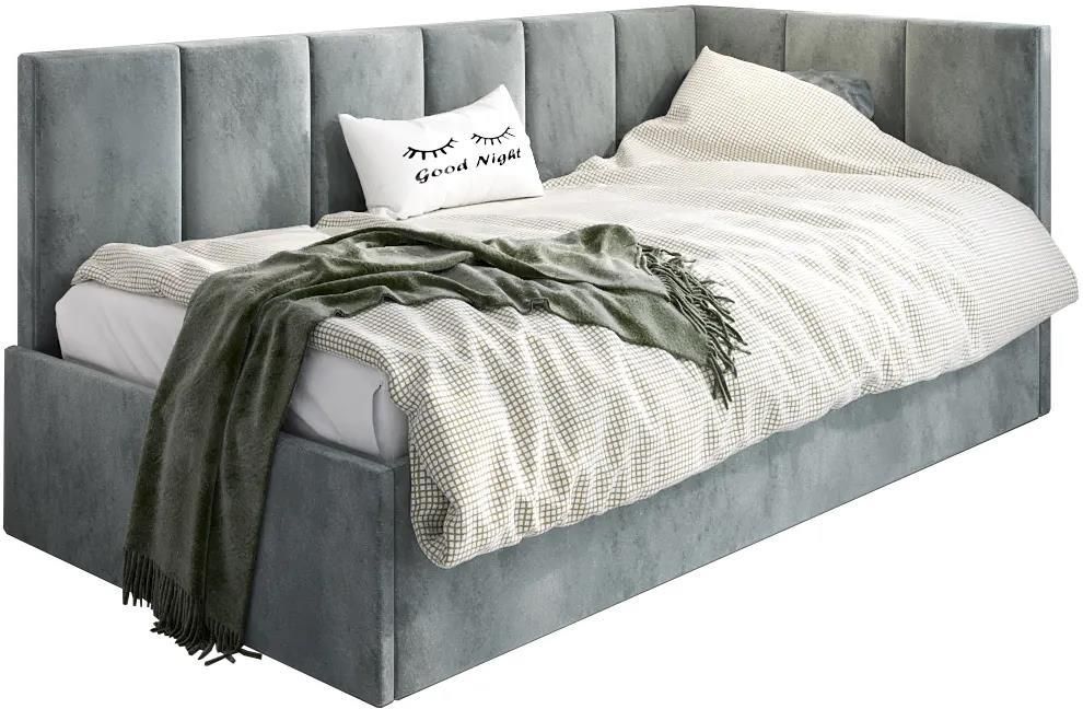 Mkpol Łóżko Młodzieżowe Aura 120X200 Szare Z Tapicerowanym Panelem L I Pojemnikiem Na Pościel Lipiany