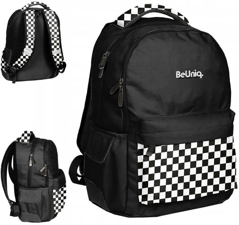 Paso Plecak Młodzieżowy Szkolny Be Uniq 2 komorowy Czarno-Biały Kratka Szachownica Lipiany
