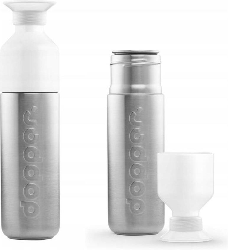 Butelka na wodę stalowa Dopper 490 ml z kubkiem Najważniejsze cechy Pijąc wodę z kranu, oszczędzasz pieniądze i przyczyniasz się do zmniejszenia ilości odpadów w środowisku, Trzyczęściowa konstrukcja czyni ją łatwą w czyszczeniu, Można ją myć w zmywarce do 65°C, Odkręcana nakrętka służy jako kubek, Pojemność: 490 ml Wymiary: 23,5 cm x 5,8 cm Waga: 142 g, Użyte materiały nie zawierają szkodliwego BPA ani ftalanów, Certyfikat Cradle to Cradle™ (dosłownie „od kołyski do kołyski”) jest przyznawany produktom, które nadają się do recyclingu. Użyte w produkcji materiały znajdują się cały czas w obiegu, co ogranicza zarówno wykorzystanie zasobów naturalnych, jak i ilość generowanych odpadów. *NIE używaj do napojów mlecznych Butelka i kubek w jednym Butelka stalowa z wbudowanym kubkiem to nieodłączny towarzysz Twoich podróży i chwil relaksu. Ta inteligentna konstrukcja łączy w sobie funkcjonalność i komfort, umożliwiając Ci cieszenie się ulubionym napojem w dowolnym miejscu. Wygodny kubek zintegrowany z korkiem sprawia, że serwowanie napoju staje się proste i eleganckie. Teraz możesz cieszyć się swoimi ulubionymi napojami w dowolnym miejscu i z nutą stylu. Zrównoważony rozwój Marka Dopper powstała z potrzeby zmiany – zmiany sposobu, w jaki korzystamy z ograniczonych zasobów naszej planety, w szczególności wody. Od 12 lat, w Haarlem w Holandii, nie tylko tworzymy butelki na wodę, ale również prowadzimy projekty edukacyjne i uświadamiająca w temacie wody kranowej i zanieczyszczenia środowiska plastikiem. Posiadamy Certyfikat B Corp, co potwierdza nasze starania, aby być firmą najlepszą DLA świata, a nie NA świecie. Łyk po łyku razem wznośmy toast za czystą wodę! Ponadczasowy design Nie wiemy do końca dlaczego, ale używanie butelki Dopper zdrowo uzależnia już od pierwszych chwil. Minimalistyczny i ponadczasowy design tworzy z niej najlepszego kompana, gdy chodzi o ugaszenie pragnienia w biurze, w domu lub na spacerze. Powstała, by zastępować jednorazowe butelki plastikowe. Jeśli (tak jak nam) jest Ci bliski temat ochrony naszego środowiska, może to być właśnie TA butelka, której szukasz. W różnych kolorach i modelach. Zatem niezależnie od Twojego stylu i potrzeb, znajdziesz Doppera dla Ciebie! Dlaczego Dopper? Dopper to inicjatywa promująca czystą wodę pitną dla wszystkich i redukująca odpady z tworzyw sztucznych. W tym celu firma Dopper opracowała idealną butelkę wielokrotnego użytku; trwałą, piękną i niewiarygodnie łatwą w czyszczeniu! Dzięki niej zmniejszysz ilość odpadów z plastiku, ponieważ znika potrzeba, aby kupować wodę w butelkach PET. Butelki Dopper to prawdziwie holenderski design, bez BPA i substancji szkodliwych.