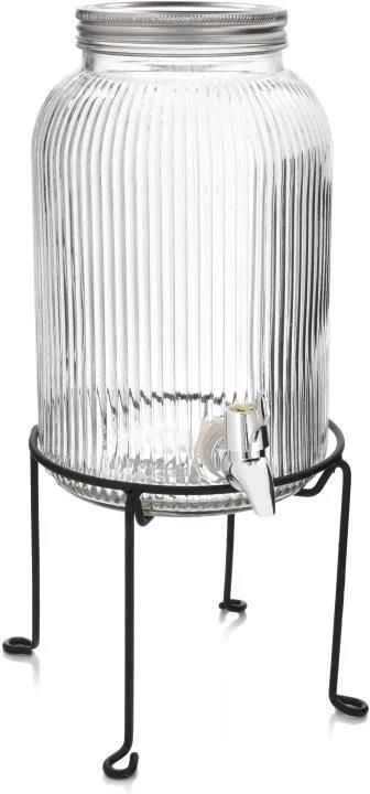 Słoik z kranikiem Ambition Curly 4L - Idealny do napojów z dozownikiem i nakrętkąSłój z kranem marki Ambition ma pojemność 4 l. Przyrządź w naczyniu lemoniadę, mrożoną herbatę lub smakową wodę i poczęstuj wszystkich gości.Naczynie wykonano z grubego, solidnego szkła, które jest w 100% ekologicznym surowcem. Szczelnie zamykane metalową nakrętką chroni zawartość przed owadami i zanieczyszczeniami. Dlatego taki słój jest najlepszą formą podania napojów na balkonie, ogrodzie czy tarasie.Słój wyposażono w kranik ułatwiający nalewanie napojów do szklanek. Uchwyt ułatwia przenoszenie naczynia w dowolne miejsce. Trunki podawane w szklanym naczyniu będą wyglądały wyjątkowo apetycznie. żłobienie w szkle kranik z tworzywa sztucznego metalowa zakrętka Pojemność: 4L Długość: 15,5cm Szerokość: 17,5 cm Wysokość: 38 cm Waga: 1,45 kg