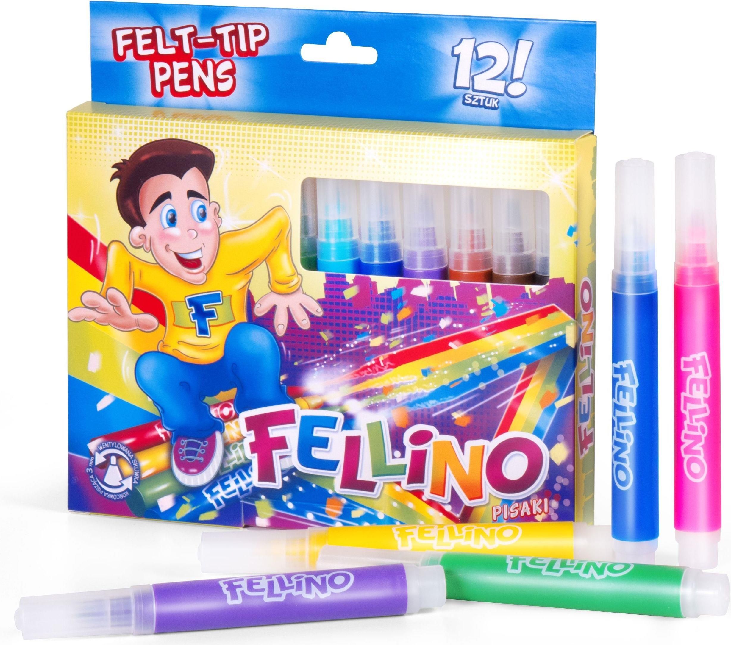 GRUBE FLAMASTRY MAZAKI PISAKI FELLINO 12 KOLORÓW KAMET JUMBO Kamet Fellino 12 kolorów super kolorowe grubopisaki Atrament na bazie wody zmywalny z większości tekstyliów szerokość pisania 2mm -3mm nietoksyczne, bezpieczne dla dzieci wentylowana skuwka obudowa z PP zatrzymującego wilgoć dzięki czemu …