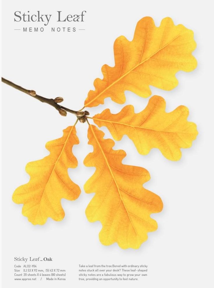 Appree karteczki samoprzylepne Dąb żółty L 4 x 20 kartek to eleganckie i praktyczne karteczki samoprzylepne inspirowane naturą. Każdy listek w kształcie liścia dębu może pełnić funkcję zakładki indeksującej lub klasycznej notatki. Produkt łączy wysoką jakość wykonania z estetycznym designem, …
