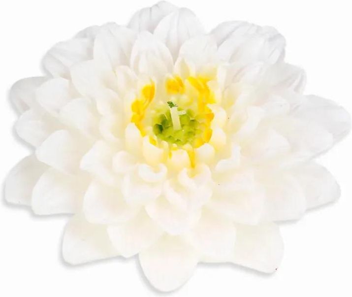- pojedyncza świeca w kształcie gerbery - forma kwiatu o krótkich płatkach i z żółtym środkiem - zwężająca się ku podstawie - zapakowana w pudełko z przezroczystą pokrywką - wymiary (wysokość x średnica): 5x11 cm