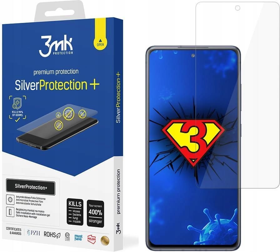 ✅Antymikrobowa folia ochronna 3MK Silver Protect+ Samsung Galaxy S20 FE ✅ ✅ ✅ SilverProtection+ Dba o Ciebie i Twój smartfon. Powłoka antymikrobowa zabija 99% bakterii, wirusów, grzybów i pleśni. Warstwa przeciwuderzeniowa wzmacnia wyświetlacz o 400%. Antymikrobowa Czy wiesz, że srebro ma aż 6000 lat doświadczenia w eliminowaniu drobnoustrojów? Sięgali po nie już starożytni, sięgneliśmy i my! Folię SilverProtection+ wyposażyliśmy w powłokę antymikrobową opartą o nanocząsteczki srebra. To jedyne zabezpieczenie ekranu, które dba jednocześnie o Twoje bezpieczeństwo i zabija 99% znanych wirusów, bakterii, grzybów i pleśni. Powłoka działa przez 24 godziny, 7 dni w tygodniu. Stoi na straży pełnego bezpieczeństwa nawet wtedy, gdy nie możesz zadbać o właściwą dezynfekcję smartfona. Czy wiesz, że na ekranie telefonu komórkowego gromadzi się nawet 300 razy więcej bakterii niż w toalecie publicznej? Czy wiesz, że ekran smartfona dotykasz ponad 2000 razy dziennie i przenosisz na niego potencjalnie niebezpieczne drobnoustroje? Na ekranie gromadzi się też Twój naskórek, pot, serum i resztki makijażu. Ciepło wytwarzane przez urządzenie stwarza doskonałe warunki dla rozwoju wirusów, bakterii i grzybów. Czy wiesz, że badania naukowe potwierdzają możliwość wymiany bakterii patogennych pomiędzy osobami poprzez używanie tego samego telefonu? Montowana na mokro SilverProtection+ to przełom w montażu. Tak łatwo jeszcze nie było! Folię zaaplikujesz przy użyciu specjalnego, w 100% bezpiecznego dla wyświetlacza żelu, który dołączamy do zestawu. Pęcherzyki powietrza i drobinki kurzu? Zapomnij! Montaż na mokro gwarantuje Ci doskonały efekt i nie wymaga wprawy. Wystarczy trochę czasu – żel odparuje i finalny efekt zobaczysz po ok. 24 godzinach. Zwiększona wytrzymałość SilverProtection+ wzmacnia ekran smartfona aż o 400%. Niewiarygodne, prawda? Wielowarstwową strukturę folii tworzy między innymi podkład antyuderzeniowy, który minimalizuje ryzyko uszkodzeniatelefonu. Wymiana wyświetlacza bywa kosztowna i czasochłonna. Oszczędź sobie tego. Komfortowa Bez zbędnych wstępów – w SilverProtection+ połączyliśmy to, co ważne. Folia jest tak elastyczna, że ściśle i trwale przylega nawet do najbardziej zakrzywionych wyświetlaczy. Palec sunie po niej jak po szkle hartowanym! Do tego wisienka na torcie: wysokiej jakości warstwa oleofobowa, która ułatwia pielęgnację. Samoregenerująca Aby wydłużyć żywotność folii, zastosowaliśmy powłokę Self-Heal™. Oznacza to, że SilverProtection+ sama naprawia niewielkie uszkodzenia czy zarysowania powstałe podczas użytkowania telefonu. Self-Heal™ sprawia, że możesz cieszyć się idealnie gładką powierzchnią folii jeszcze dłużej! PZH Eksperyment badawczy dscout pokazał, że przeciętny użytkownik trzyma telefon w dłoni niemal 2,5 godziny dziennie. SilverProtection+ posiada atest Państwowego Zakładu Higieny, co gwarantuje, że jest wolny od substancji szkodliwych i bezpieczny dla zdrowia – niezależnie od tego, ile czasu z telefonem spędzasz. ROHS Zabezpieczając telefony, mamy na uwadze troskę o planetę. SilverProtection+ przeszedł pozytywnie certyfikację RoHS w niezależnym laboratorium – oznacza to, że jest przyjazny środowisku i mieści się w ścisłych unijnych dyrektywach dotyczących zawartości metali ciężkich i niebezpiecznych substancji (m.in. ołowiu, rtęci czy kadmu). Skład zestawu: 1 szt. SilverProtection+ (przód) raszelka żel montażowy CleaningSet ✅3MK1232 ✅ ✅ ✅Antymikrobowa folia ochronna 3MK Silver Protect+ Samsung Galaxy S20 FE ✅