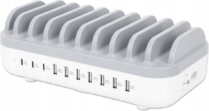 Manhattan Szybka Ładowarka Sieciowa 10X Usb-A/C 120W Pd 3.0 Lipsk