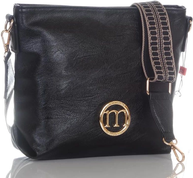 Monnari Czarna pojemna torebka listonoszka na pięknym pasku Lipsk