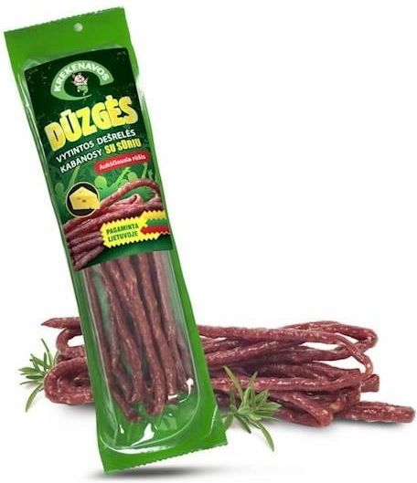 Kabanosy Wieprzowe z Serem - Przekąska Pełna Smaku! 100g Krekenavos Krekenavos Odkryj Kabanosy Wieprzowe z Serem od renomowanej marki Krekenavos, idealną przekąskę na każdą okazję! Te soczyste kabanosy to doskonałe połączenie wyśmienitego smaku wieprzowiny i delikatnego sera, które zapewnią niezapomniane doznania smakowe. Każdy kęs to prawdziwa uczta dla podniebienia, która przypadnie do gustu zarówno dzieciom, jak i dorosłym. Wygodne opakowanie 100 g sprawia, że możesz je zabrać wszędzie - do pracy, w podróż, czy na piknik! Kabanosy Wieprzowe z Serem to idealna propozycja dla wszystkich miłośników smacznych i sycących przekąsek. Oto dlaczego warto je spróbować: Wysoka jakość składników - tylko starannie wyselekcjonowane produkty Wielkość porcji - idealna do podziału lub samodzielnej konsumpcji Uniwersalność - doskonałe na przekąskę, dodatek do kanapek lub sałatek Wzmocnienie smaku dzięki zawartości pysznego sera Nie czekaj dłużej! Spróbuj Kabanosów Wieprzowych z Serem i przekonaj się, jak łatwo można wyczarować wyjątkowy smak w każdym zakątku swojego dnia! EAN (GTIN): 4770609164439 Marka: Krekenavos Waga (g): 100 Nazwa handlowa: Kabanosy wieprzowe z serem Rodzaj: kabanosy Główny składnik: wieprzowina Skład i Termin przydatności: do 28 dni (znajdują się na etykiecie)Bezpieczeństwo wysyłkiZamówione produkty trafią do Was świeże. Zamówienia realizujemy w poniedziałki, wtorki, środy oraz czwartki.Każde zamówienie jest starannie próżniowo zapakowywane.Po odebraniu zamówienia od nas przez kuriera, paczka będzie doręczona następnego dnia.Zamów już teraz, a jeśli chcesz, aby zamówienie dotarło do Ciebie w konkretny dzień poinformuj nas o tym w wiadomości do sprzedającego w trakcie składania zamówienia.