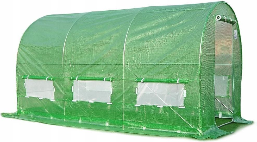 Tunel Foliowy 2x3x2 - 6m2 Zielony - OpisChcesz mieć pewność, że to, co jesz, jest zdrowe i bezpieczne? Cenisz sobie produkty z upraw ekologicznych? Hodujesz własne warzywa, jednak nie jesteś zadowolony z efektów? Tunel foliowy to propozycja dla wszystkich pasjonatów domowych upraw – zapewni roślinom idealne warunki do rozwoju: ochroni je przed niekorzystnym działaniem czynników atmosferycznych, przyspieszy i poprawi wydajność plonów, a także wpłynie na wydłużenie sezonu. Tunel foliowy umożliwia Ci regulację temperatury, wilgoci i cyrkulację powietrza, dzięki czemu stworzysz roślinom odpowiedni mikroklimat. Ze względu na swoją funkcjonalność, solidność i cenę stanowi dobrą alternatywę dla tradycyjnej szklarni. Tunel o długości 3 m i wysokości 200 cm pozwala na swobodne poruszanie się. Posiada 6 zamykanych okien wentylacyjnych z moskitierami, które umożliwiają odpowiednią cyrkulację oraz regulację temperatury i wilgotności powietrza. Szerokie, rolowane drzwi z zatrzaskami zwiększają funkcjonalność tunelu. Wewnątrz umieszczono dwie poprzeczki montowane w górnej części stelaża, które zapewnią stabilność, a także pozwolą na podwiązanie sznurków dla roślin pnących. Materiały wykorzystane do wykonania tunelu cechują się wysoką jakością: konstrukcję oparto na stalowych, obustronnie ocynkowanych profilach, co zapewnia mu wytrzymałość i odporność na korozję. Do pokrycia użyto wysokogatunkowej, przezroczystej foli z filtrem UV4, w której zatopiono siatkę PP, co zabezpiecza ją przed rozerwaniem. Cechy produktu konstrukcja oparta na stalowych, obustronnie ocynkowanych profilach – gwarancja wytrzymałości i odporności na korozję montaż za pomocą śrub – solidność i sztywność konstrukcji pokrycie z przezroczystej, warstwowej folii PE 140 g/m2 z filtrem UV4 – najwyższa ochrona przed szkodliwymi czynnikami pogodowymi siatka PP wtopiona w strukturę folii wzmacnia ją oraz zabezpiecza przed rozerwaniem 6 okienek wentylacyjnych pozwoli na regulację temperatury i prawidłową cyrkulację powietrza szerokie, zwijane drzwi z podwójnym zamkiem i zatrzaskami fartuch ziemny do obsypania ziemią – ochrona przed podwianiem folii i dodatkowa stabilizacja konstrukcji rzepy mocujące folię do podstawy konstrukcji zapewniają jej idealny naciąg optymalna wysokość (200 cm) pozwala na swobodne poruszanie się i wykonywanie prac Drzwi o wysokości 170cm pozwalają na swobodny dostęp.Wymiary Szczegóły