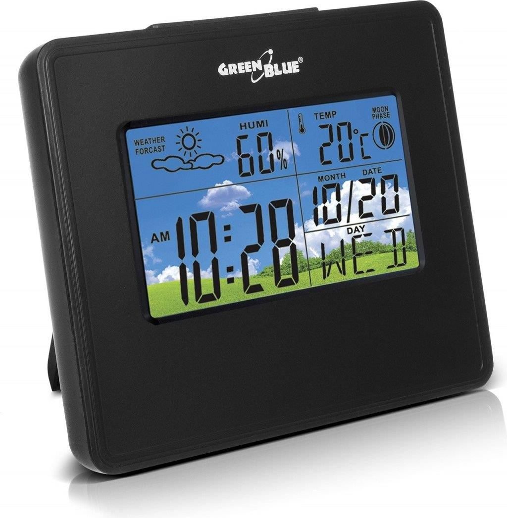 Bezprzewodowa stacja pogody higrometr budzik podświetlenie LED GreenBlue GreenBlue GB148B (47331) Graficzna prognoza pogody Fazy księżyca Alarm z funkcją drzemki Podświetlenie LED Pamięć wartości maksymalnych i minimalnych Kolorowy, czytelny ekran Możliwość postawienia lub powieszenia Niezawodna, …