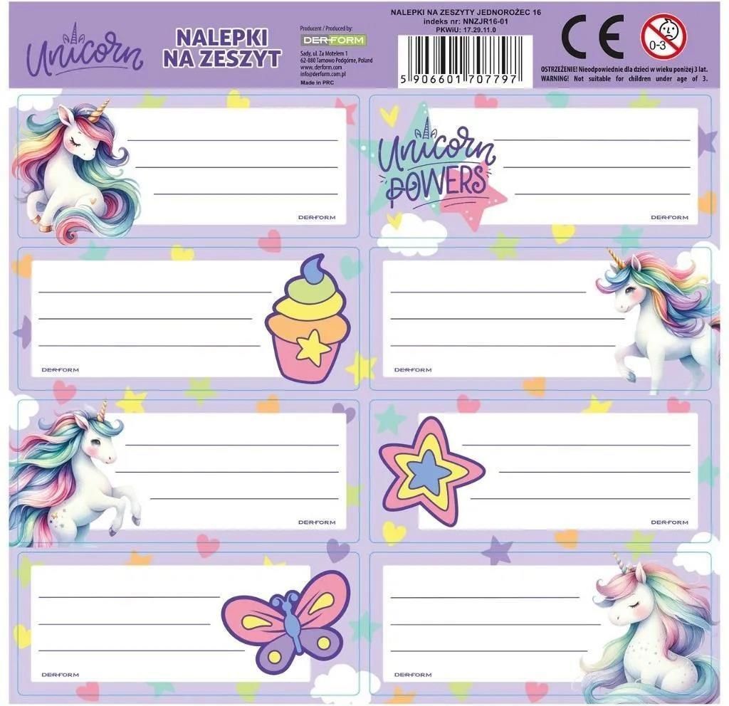 Nalepki Na Zeszyty Jednorożec 16 25Szt. Derform Lipsko