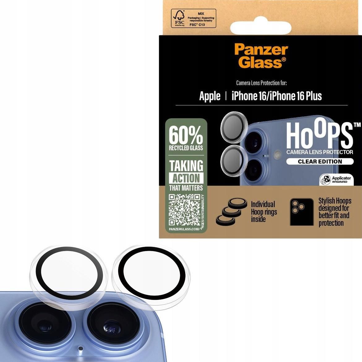 PanzerGlass Hoops Camera Lens Protector Clear Edition Do Apple iPhone 16 Plus Do Apple iPhone 16 Pancerna odporność: na uderzenia i zarysowania Powłoka oleofobowa: minimalizuje pozostawianie smug i odcisków palców Łatwa aplikacja: dedykowany aplikator Profesjonalna jakość: nie zakłóca jakości zdjęć i filmów Szkło wyprodukowane w 60% z odzyskanego szkła z recyklingu Kod producenta: 1285 Kod produktu: 5715685003028 Przedmiotem sprzedaży jest sama ochrona obiektywu z zestawem aplikacyjnym, pozostałe akcesoria widoczne na zdjęciach służą jedynie przedstawieniu jego funkcjonalności. Ochronne kółeczka Nie ma nic gorszego niż przypadkowe upuszczenie telefonu, które może zniszczyć nie tylko ekran, ale także delikatny obiektyw kamery. Dzięki Panzerglass Hoops możesz odetchnąć z ulgą, wiedząc, że Twój telefon jest zabezpieczony przed codziennymi niefortunnymi wypadkami. Wyjątkowa konstrukcja odporna na uderzenia zapewnia ochronę nawet w najbardziej niespodziewanych sytuacjach. Powłoka oleofobowa Nic nie psuje estetyki zdjęć bardziej niż uporczywe odciski palców na obiektywie kamery. Hoops wypiera zarówno olej, jak i wodę, redukując ślady odcisków palców, zabrudzenia czy resztki żelu dezynfekującego i balsamu do rąk. Twoje zdjęcia będą teraz wyglądać jeszcze lepiej! Profesjonalna jakość Nie pozwól, aby ochrona obiektywu wpłynęła na jakość Twoich fotografii! Hoops został zaprojektowany w taki sposób, aby nie zakłócać pracy Twojej kamery. Pozwala on na swobodne wykorzystanie wszystkich funkcji fotograficznych, dzięki czemu możesz uwieczniać każdy piękny moment w pełnej rozdzielczości i bez jakichkolwiek zakłóceń. Montaż na klik Nie pękaj, aplikacja szkła jest tak prosta, że producent nawet nie nagrał filmiku instruktażowego. Jak zrobić i się nie narobić - krok po kroku: Za pomocą najpierw mokrej, a potem suchej ściereczki, oczyść powierzchnię wyspy aparatu. Ewentualne pyłki usuń za pomocą naklejki antykurzowej. Odklej warstwę ochronną ze szkła. Dopasuj szkło do wyspy aparatu. Dociśnij, aż kliknie. Co w zestawie osłony na soczewki ✅ naklejka antykurzowa (01) ✅ sucha ściereczka z mikrofibry (02) ✅ w pełni recyklingowane opakowanie! ✅