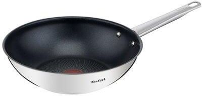 TEFAL Cook Eat B9221904 28 cm Jakość na długie lata. Naczynie zostało wykonane z najwyżej jakości stali nierdzewnej 18/10, która gwarantuje jego trwałość i doskonałe efekty użytkowania przez długi czas. Zawsze perfekcyjne rezultaty Wskaźnik zmienia kolor na mocno czerwony, gdy patelnia rozgrzeje się do temperatury idealnej do smażenia. Dzięki temu zyskujesz idealną teksturę, kolor i smak swoich dań przy zachowaniu maksimum wartości odżywczych. Nitowane uchwyty ze stali nierdzewnej Korzystaj w nieograniczony sposób z patelni Cook Eat dzięki nitowanym uchwytom ze stali nierdzewnej, które zapewniają nienagrzewanie się rączek oraz solidne wykonanie. Nieprzywierająca powłoka z tytanem Odkryj patelnię, która jest pokryta powłoką nieprzywierającą — nie tylko z łatwością ugotujesz obiad, ale i wyczyścisz ją w mgnieniu oka!