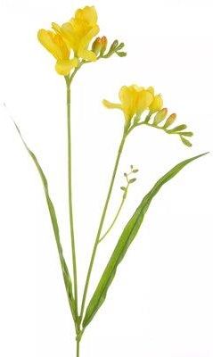 FREZJA kwiat dekoracyjny o płatkach z jedwabistej tkaniny, wygląda niezwykle realistycznie i elegancko. Gałązka z dwoma kwiatami wykonana z niezwykłą dbałością o detale, zachwyca naturalnym pięknem, intensywną barwą i jest idealnym pomysłem na harmonijne dopełnienie wystroju wnętrza. Sztuczne kwiaty nie więdną, a giętkie łodygi pozwalają na dowolne kształtowanie, co zapewnia idealną formę bukietu czy kompozycji.
