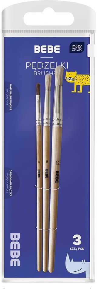 Pędzelki okrągłe Interdruk 3 sztuki Zestaw okrągłych pędzelków Interdruk to niezastąpione akcesoria plastyczne dla dzieci, uczniów i hobbystów. W komplecie znajdują się 3 pędzelki o różnych szerokościach i kształtach końcówek, co pozwala na wszechstronne zastosowanie – od malowania szczegółowych elementów po większe powierzchnie. Pędzelki posiadają wygodne, drewniane trzonki oraz naturalne włosie, które dobrze rozprowadza farbę, zapewniając równomierne krycie. To idealny zestaw do zajęć szkolnych, domowych prac plastycznych i twórczych projektów artystycznych. Zalety zestawu pędzelków Interdruk: 3 sztuki w komplecie – różne szerokości i kształty końcówek, Naturalne włosie – precyzyjne i równomierne rozprowadzanie farby, Drewniane trzonki – trwałe i wygodne w użytkowaniu, Uniwersalne zastosowanie – szkoła, plastyka, hobby, sztuka, Odpowiednie dla dzieci i dorosłych. Specyfikacja: Marka: Interdruk Typ: pędzelki okrągłe Ilość w zestawie: 3 sztuki Materiał trzonka: drewno Włosie: naturalne Pędzelki okrągłe Interdruk 3 sztuki to praktyczny zestaw, który sprawdzi się zarówno podczas zajęć szkolnych, jak i w domowej pracowni plastycznej.